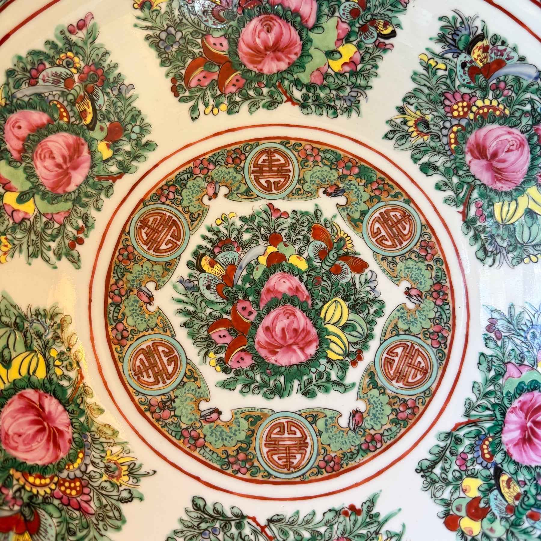 A gorgeous and HUGE famille rose canton punch bowl. My personal favorite variation of the rose canton pattern. It is such a showstopping piece, I have never seen a bowl this large!
