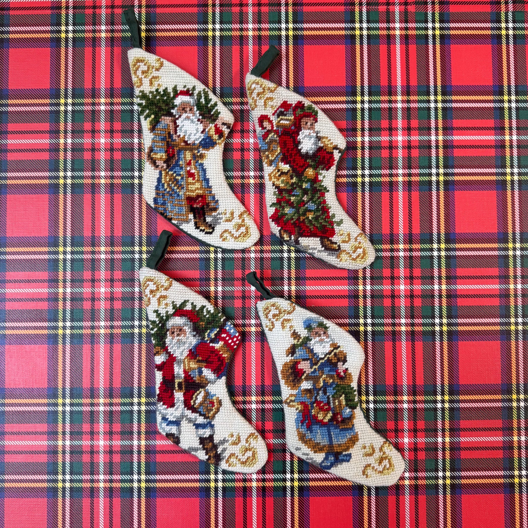 Set of Four Vintage Mini Needlepoint Stockings – Style A