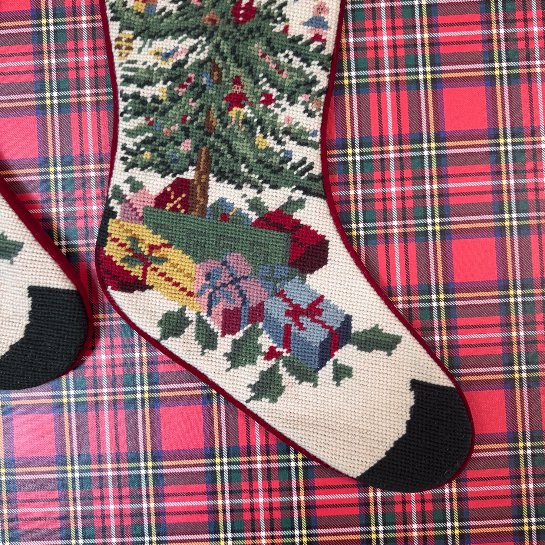 Vintage Christmas Tree Needlepoint Stocking