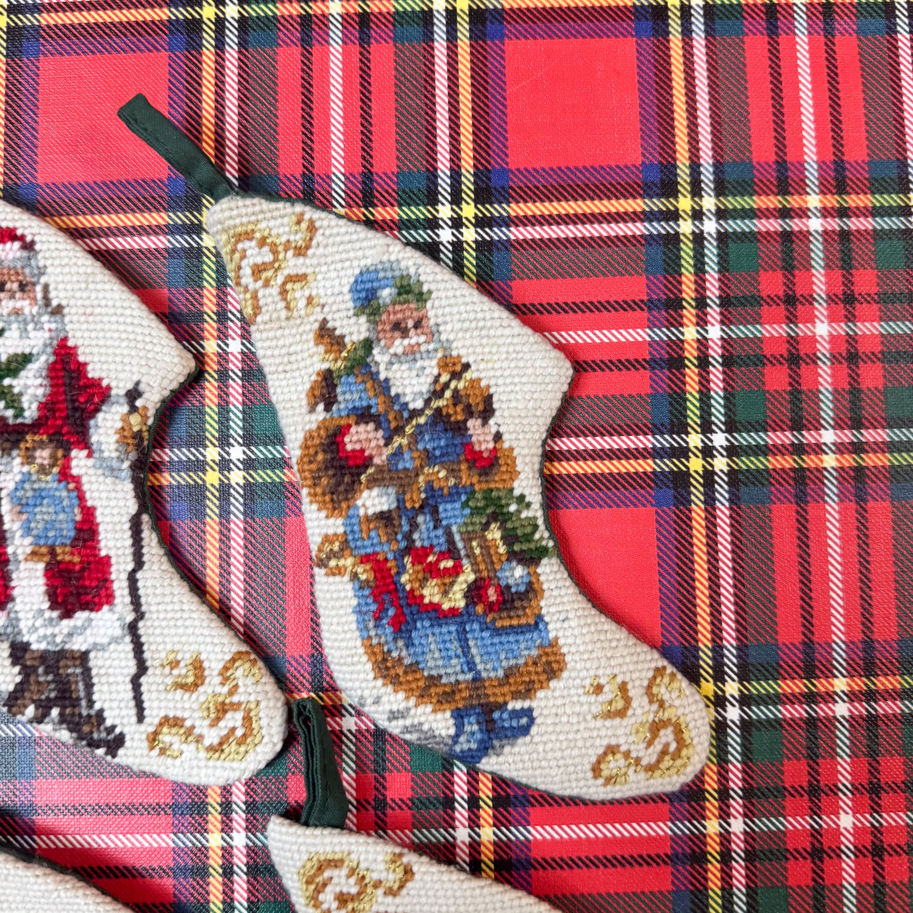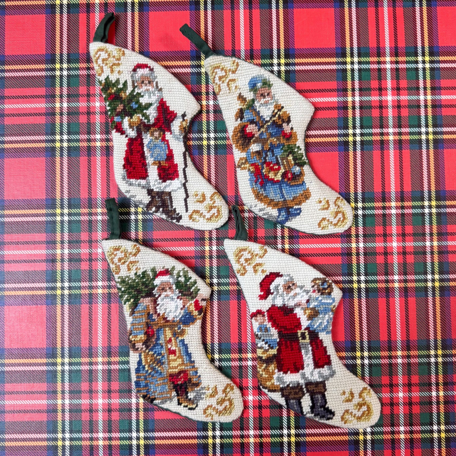 Set of Four Vintage Mini Needlepoint Stockings – Style B
